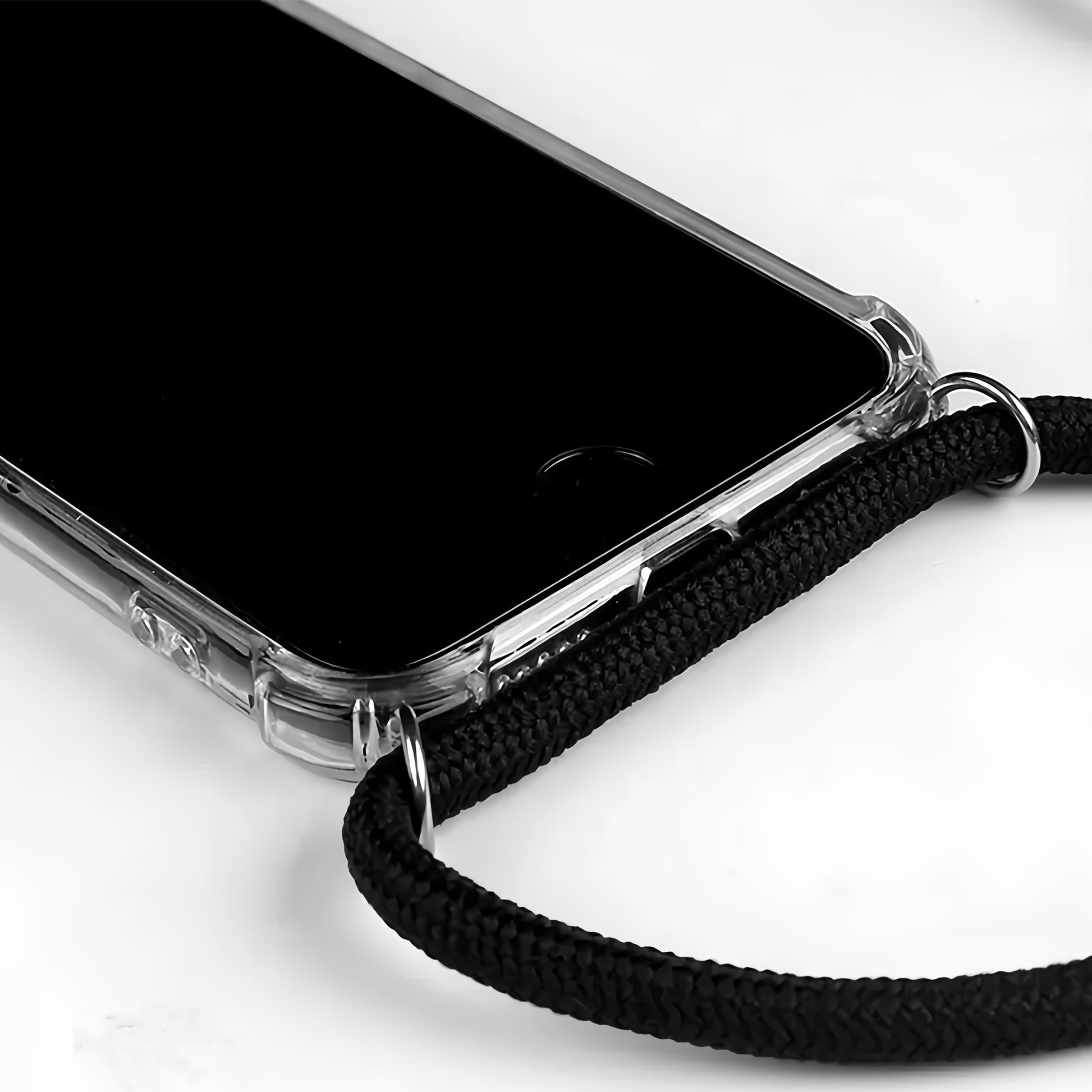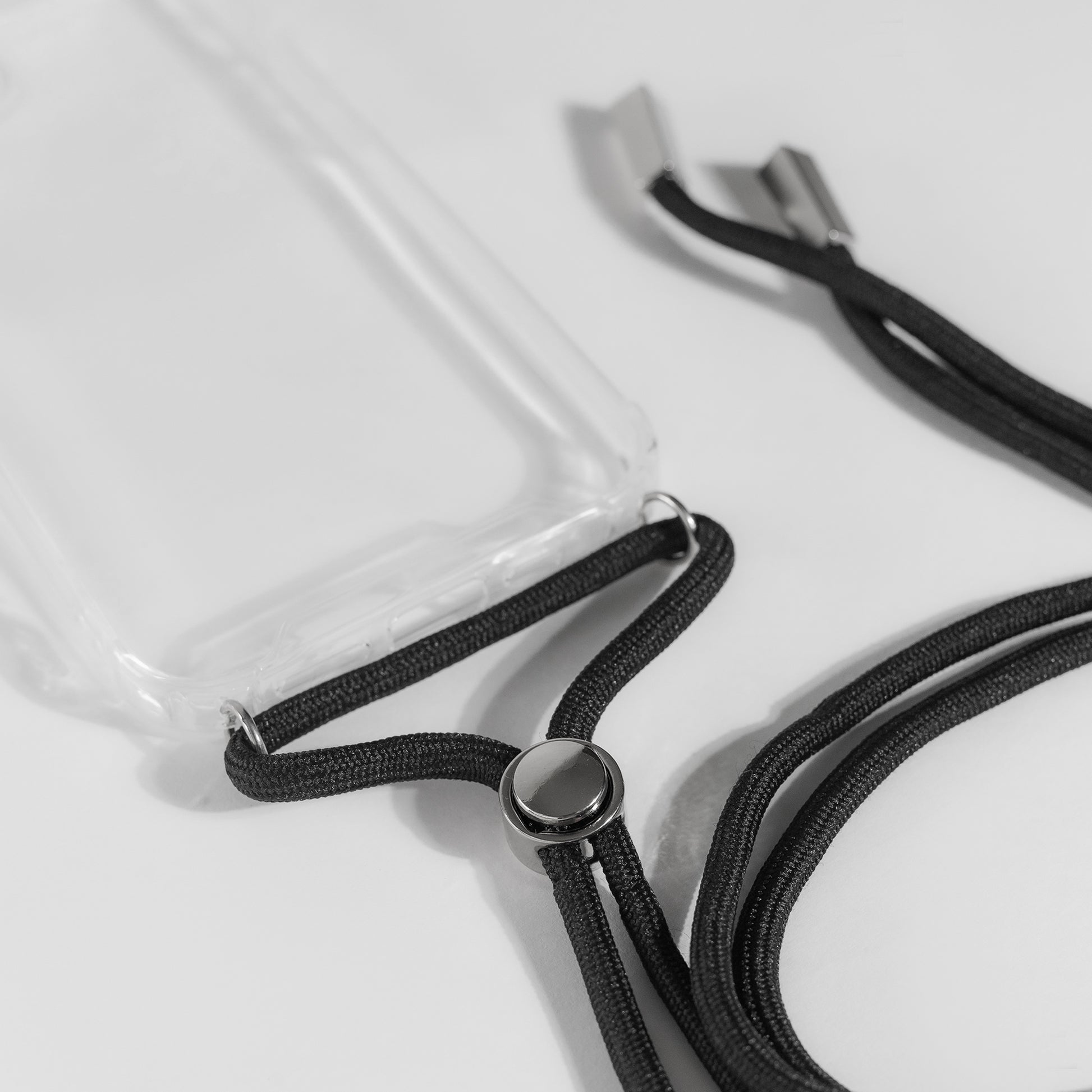Capa feita em silicone gel com Cordão em tecido e pontas em acrílico. Super resistente e confortável para nunca lagares a tua capa.