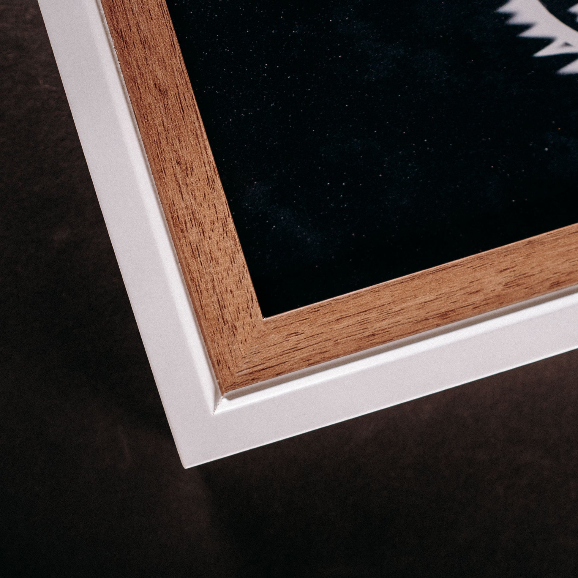 A Moldura Peace está disponível em vários e pode ser colocada na parede através do gancho removível para colocar na vertical ou horizontal, ou então pousada em qualquer superfície com o suporte de cavalete resistente na parte de trás da moldura.